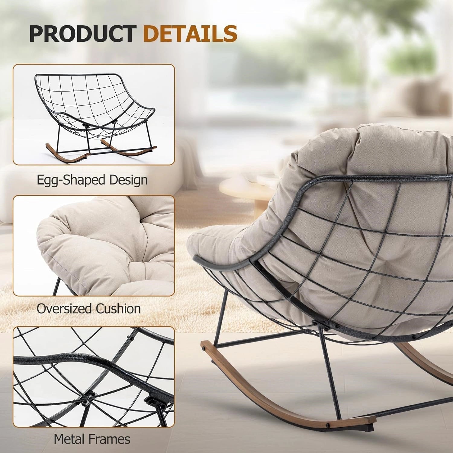 INNOVATION STYLISH OUTLOOK: This egg-shaped rocking chair has a simple and stylish appearance, with smooth, rounded curves, no sharp edges, and hard straight lines, these soft lines give people an elegant, soothing visual experience, no matter from which angle you look at it, it presents a harmonious sense of beauty, as a piece of exquisite artwork.